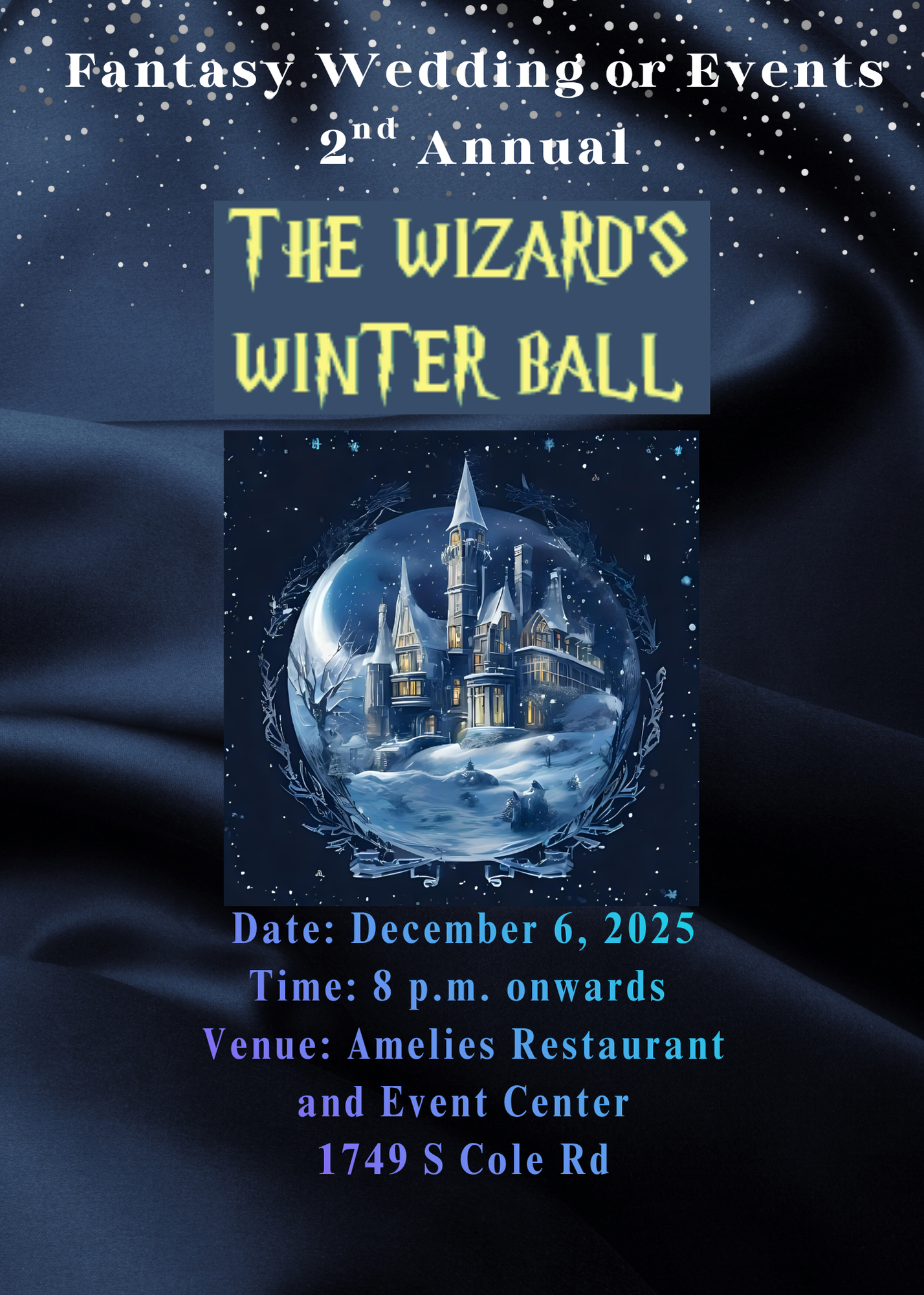 Fantasy Wedding or Events proudly presents our Second Annual Wizard’s Winter Ball — an evening of pure magic and wonder.